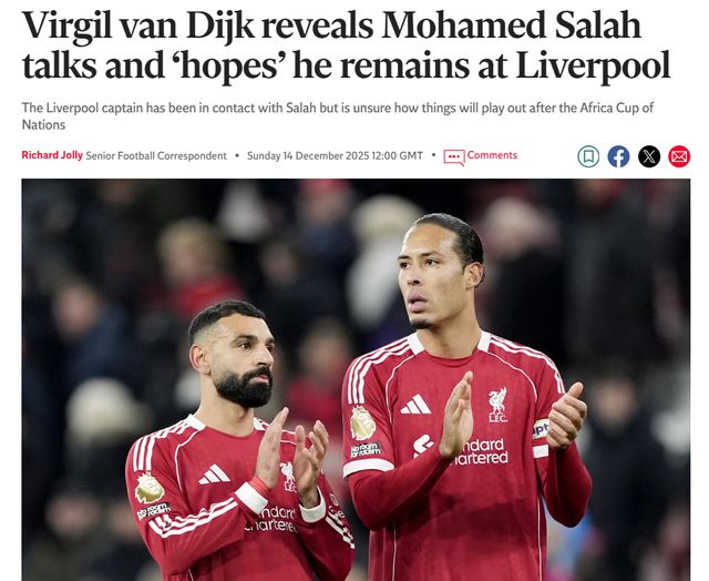 在接受采访时,范戴克透露:“我当然和萨拉赫谈过,我俩无话不谈。我告诉他,希望他继续留在利物浦。至于其他的内容,我就不多说了。”